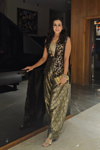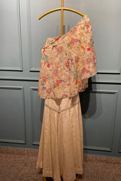 One shoulder multi embroidered cape and crinkle tissue gharara set